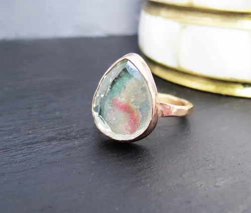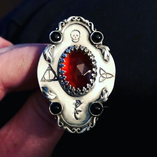 These designs function as tiny wearable urns. The cremains are stored behind the gemstones, and are sometimes visible through them.