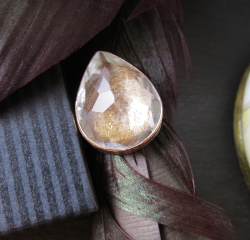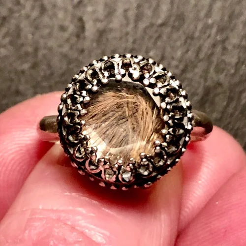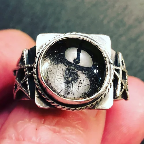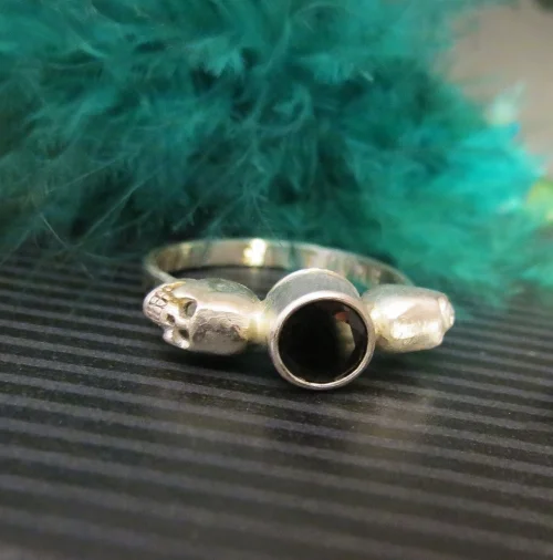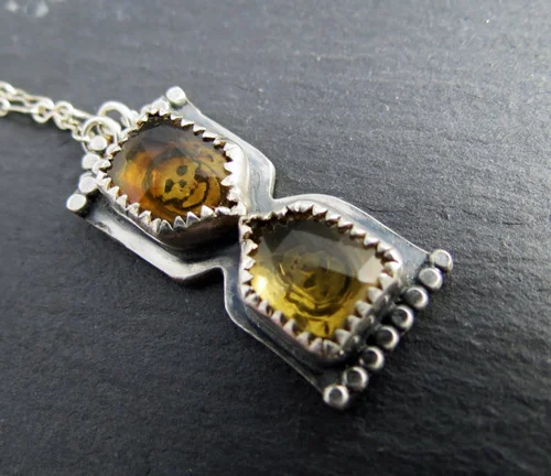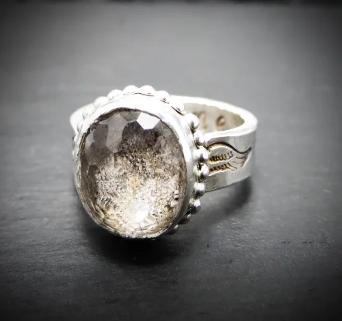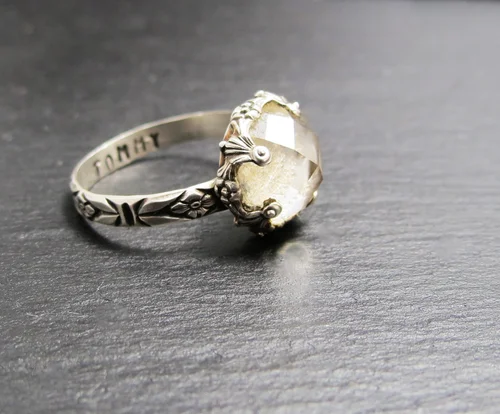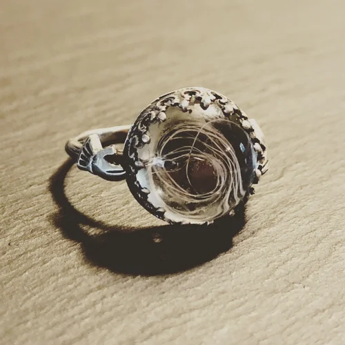These silver rings with gold filled beadwire were ordered by a bereft dog owner for herself and her best friend to hold the ashes of her beloved dog Toby. The ash is held under faceted citrine gemstones.