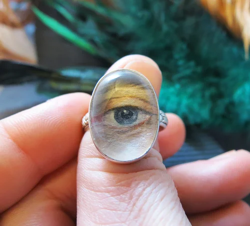 These pieces contain tiny watercolor paintings made by the very talented Constance Derlikowski in the style of Georgian lover's eyes.